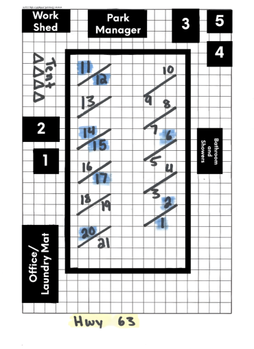 The blue highlighted sites are 50 amp sites.